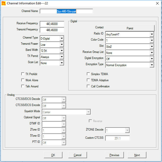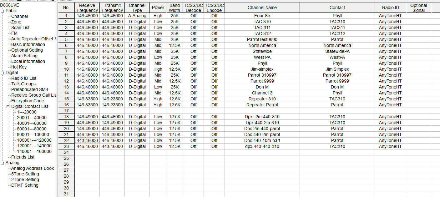 AnyTone D868UV radio - channel 22 works to Parrot - Also OK to 310 but sometimes I get a Parrot like repeat to me - not sure why DMR/AnyTone-6-25-18-dual-test-working2Parrot-ch22.rdt
