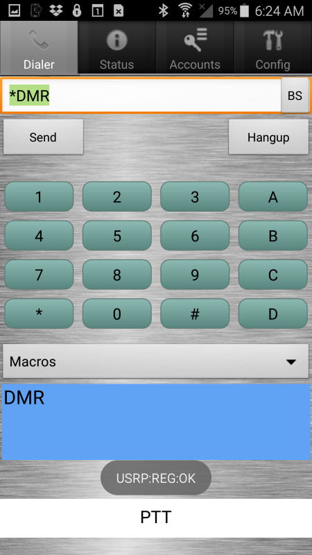 If you don't see the screen below press the "Register" button (it will be where my screen shows "Hangup") To go to a channel just type it in on the keypad (3100 for example) and press "Send" Note that the "BS" button is Back Space