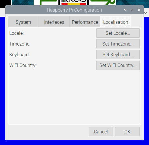 Then set all of the following as applicable; Set Local Set Time Zone Set Keyboard Set WiFi Country