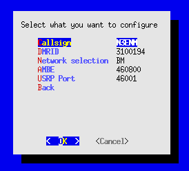 Enter call sign, dmr id, network selection s/b HBLink If you have Northwest Digital dv 3000 baud rate 460800