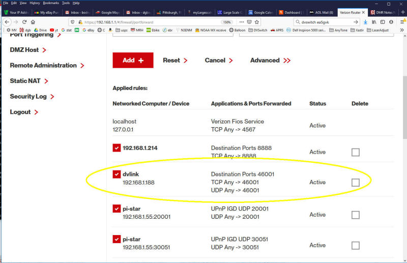 | Port Forwarding On my Verison FIOS router I turned on Port Forwarding for both UDP aTCP as shwon here - the local IP address for the DVLink server is 192.168.1.188