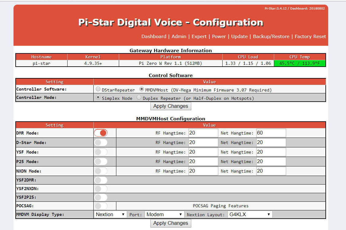 | Pi-Star Settings This screen shot shows the settings I used in Pi-Star under Configuration