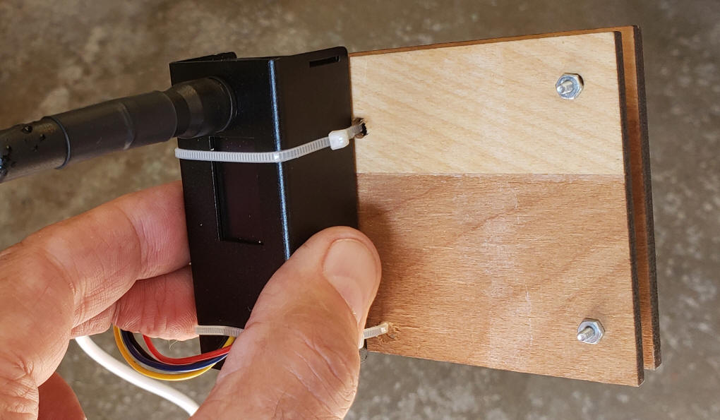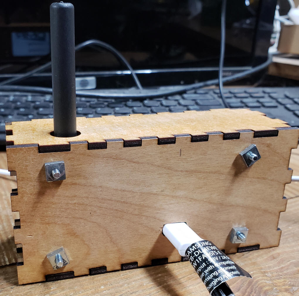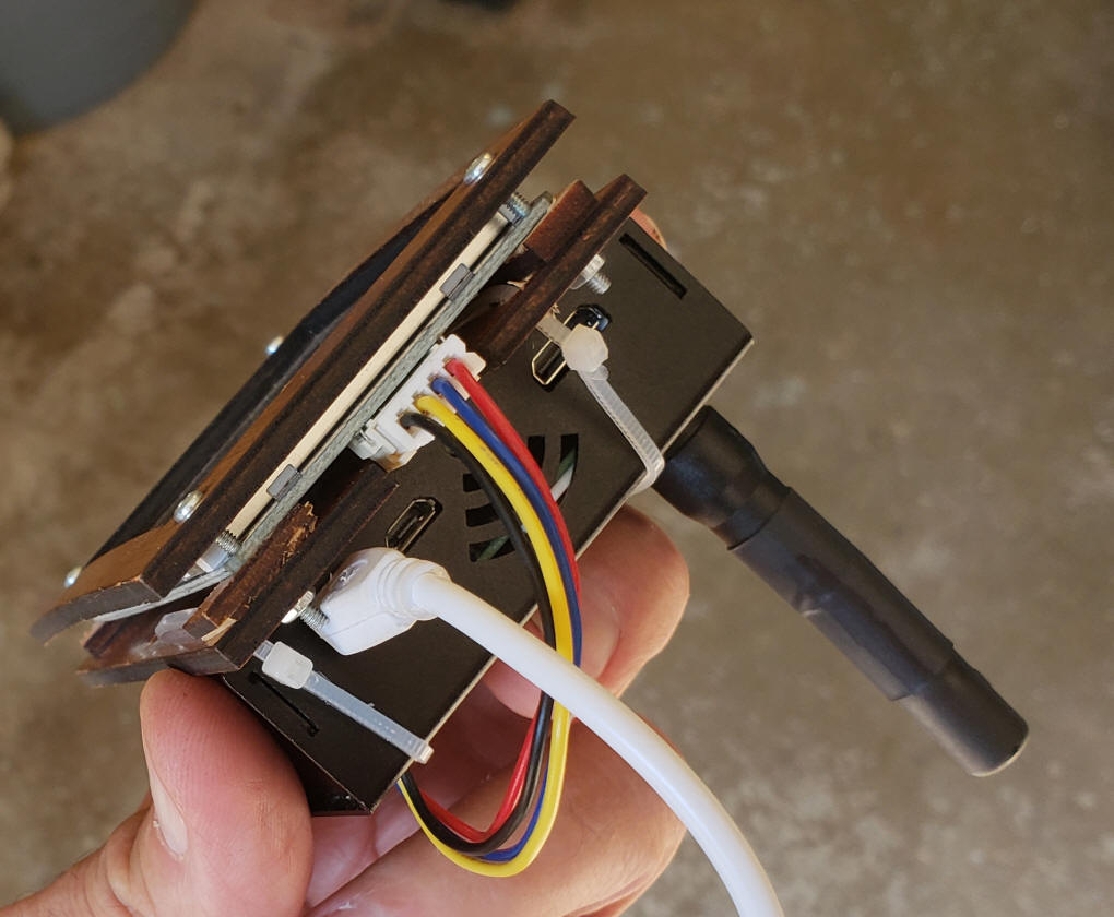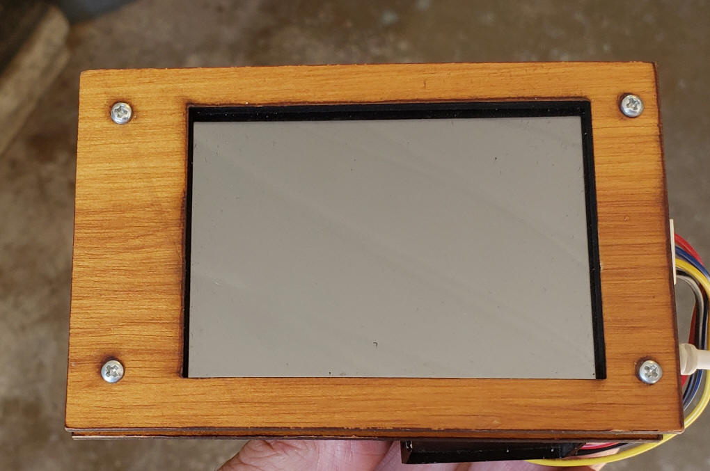 laser cut sandwich - this pair of boards pinch the display between them to protect the display. This arrangement is used on my bicycle-mobile unit - the Jumbo Spot attaches to the back of the board with two cable ties (those holes were cut manually) - photos after these images