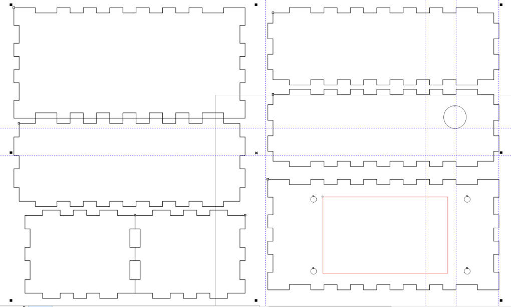 | Enclosures - laser cut box - these six pieces assemble to make a box for the 3.2" display. The only thing that is NOT cut is a hole for the USB power connection - that can be done manually or I may redo the box to include such an opening - some photos follow these images