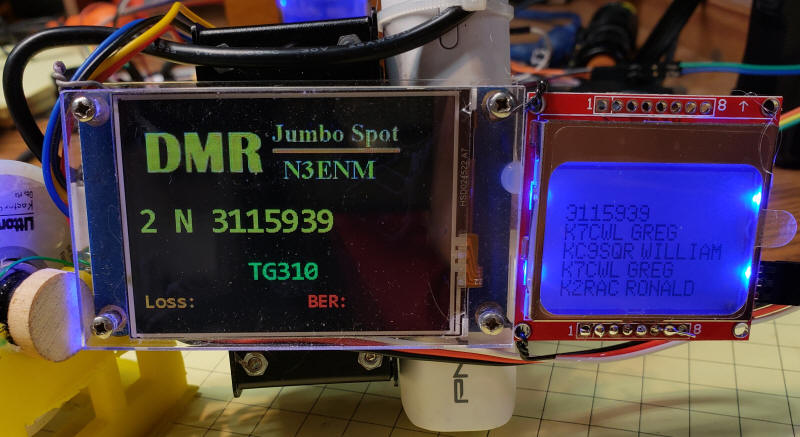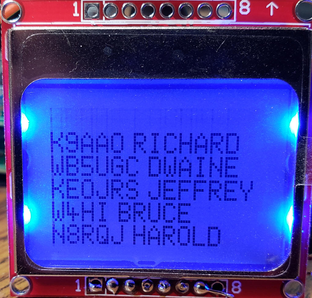 | Introduction The MMDVM hot spot (also called the Jumbo Spot or the China Spot) comes with a small (0.9") OLED display. While this provides important information and can be used to see call signs and names it is so small that many cannot see the small text without strong lenses. The Nextion display takes care of this issue as it dramatically larger than the OLED display. I use the Nextion display in my home, car and while riding my bicycle. After using these displays for many, many hours I have found that the only really important things that I look for are a ham's call and first name. The Nextion provides this information but it only displays it for a short time. On a recent bike ride I started to think about what I would like to see on a display and decided that just a list of the latest caller's call & name along with a short list of the previous callers.