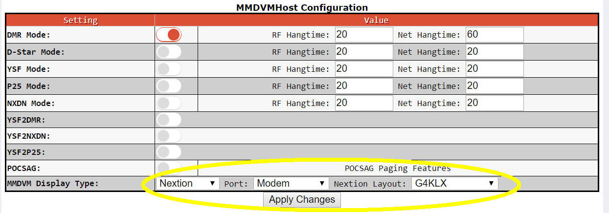 Pi-STAR Settings The settings that I used under Configuration on Pi-Star are shown here circled in yellow.