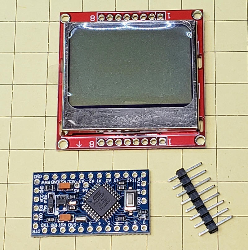 | Hardware There are any number of displays that could have been used for this project. I decided to use an inexpensive and readily available display that was once used in Nokia call phones, the Nokia 5110 display. A great deal of information about this display is available on the Internet and they can be purchased on eBay for less than $5.00. For a bit more you can get them from Amazon. You may see that these displays are only for 3 volt operation. I have found that all of the units that I have purchased work just fine when connected to 5 volt devices. I needed a microcontroller to go between the hot spot and the display. Again, I opted for an inexpensive and well supported version of the Arduino called the Pro Mini. They are available from eBay and Amazon for a few dollars. Make sure you get the 5 volt version and, if you don't already have one, the serial programmer that allows you to program the Arduino.