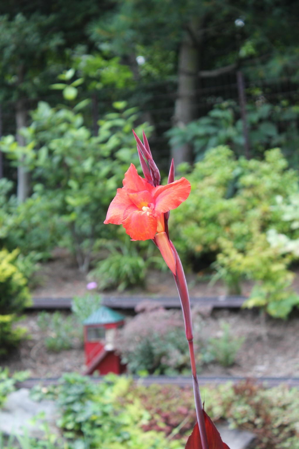The plant in the pond (seen in the photos taken in early July) sprouted about 12" yesterday and flowered this morning. It is now at least 6 feet tall! Excellent!