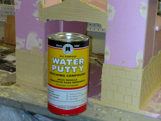 It's Alive! Running on December 1, as planned - more work needed on the buildings but the incline is functional! Texture was added to the foam building by coating the bottom section and roof towers with a thin layer of a cement product called Water Putty. When it was nearly dry lines were scribed into it to represent shingles and stone joints.
