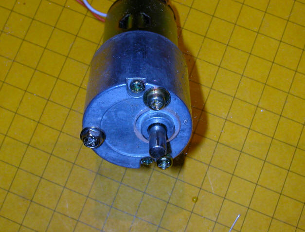 The motor is a 12 volt unit with built in gearing that reduces its speed to around 7 RPM. In the photo below it has been screwed to a piece of 1/8" Plexiglas for testing.