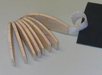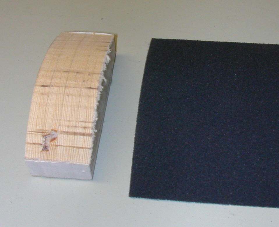 The first step in roof construction. Do you recognize the material? It is coarse emery paper. Forms well, is waterproof and looks about right!