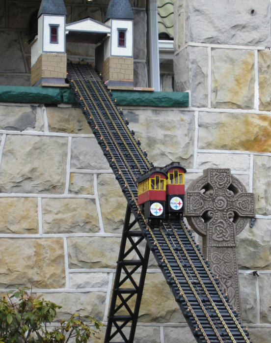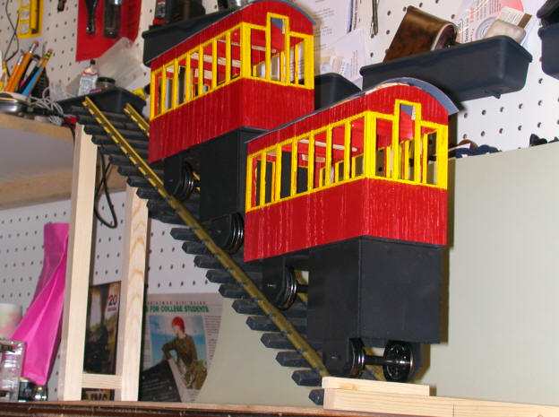 Step-by-Step The three images below show the track base with and without the track installed. The base is about 13' long and will rise a bit over 6' at a 30 degree angle, the same as the Duquesne Incline. The scale is approximately 1/33 using G gauge track