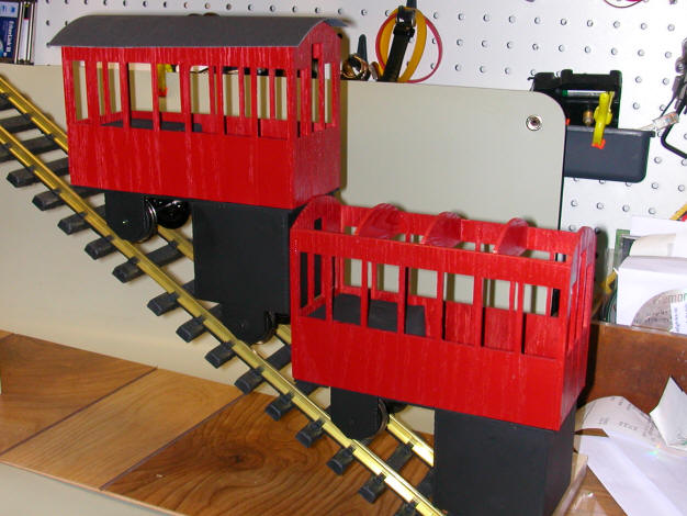 Sides and ends for the incline car. The base and baggage box on the right will be painted black. The car will be red with yellow around the window cutouts. Haven't figured out how I will do the windows yet.....