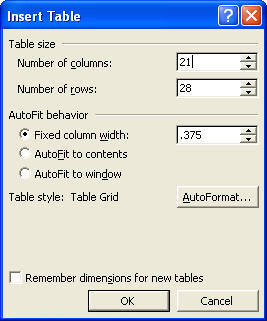 Before you start give some thought to the size grid you want to print. If you are working with 8 1/2" x 11" paper you are limited to printing on all but the outer 1/4" border. If you wanted a grid of 3/8" (0.375") you would be able to print 8.25 " / .375" = 22 columns across and 10.5" / .375" = 28 rows.