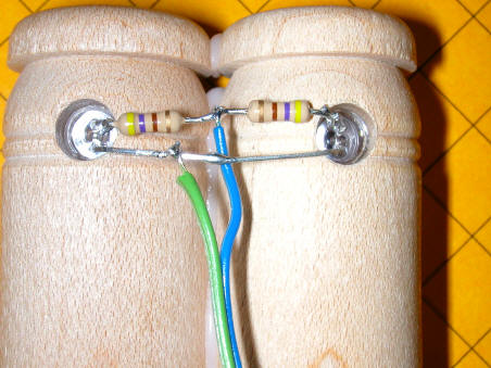 of the LEDs don't touch and short out. Bending them as in the photo helps